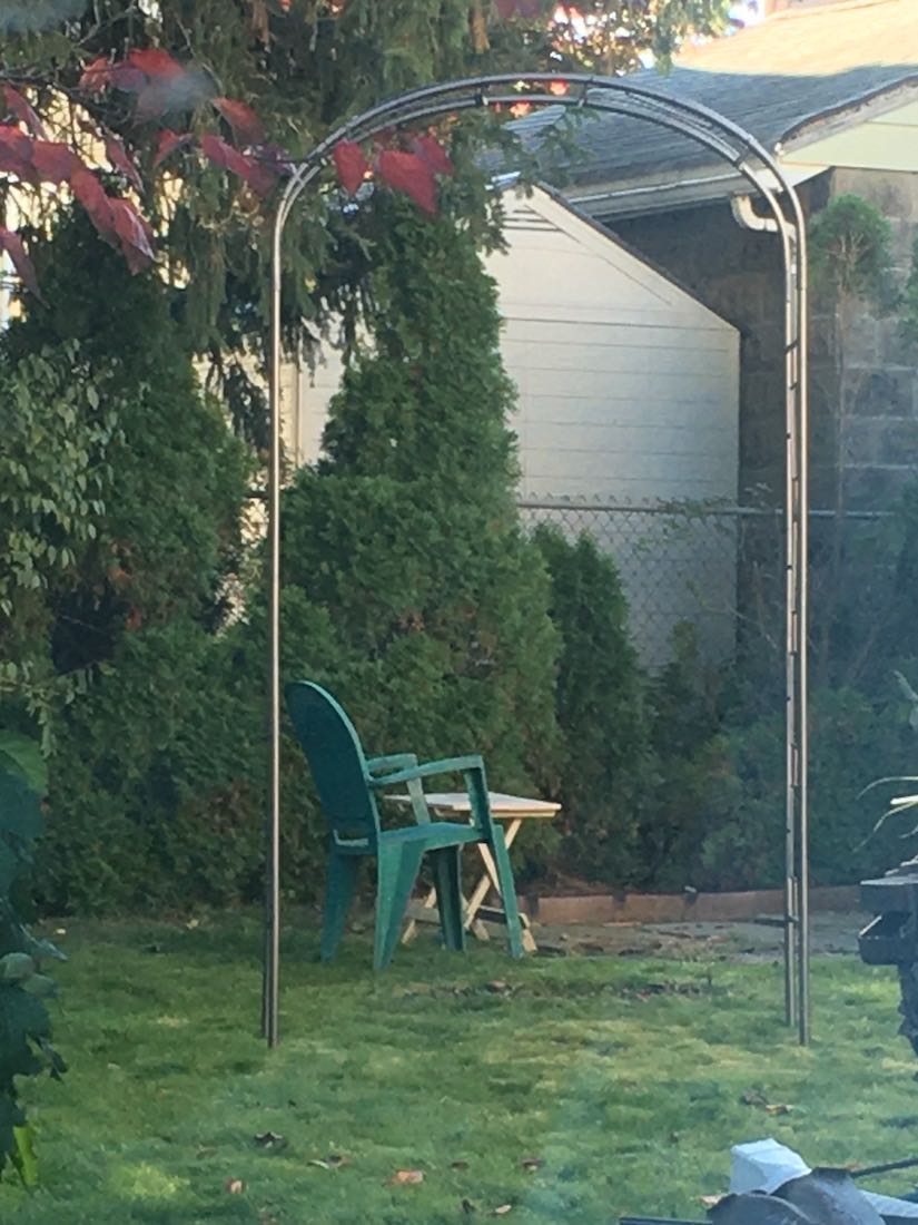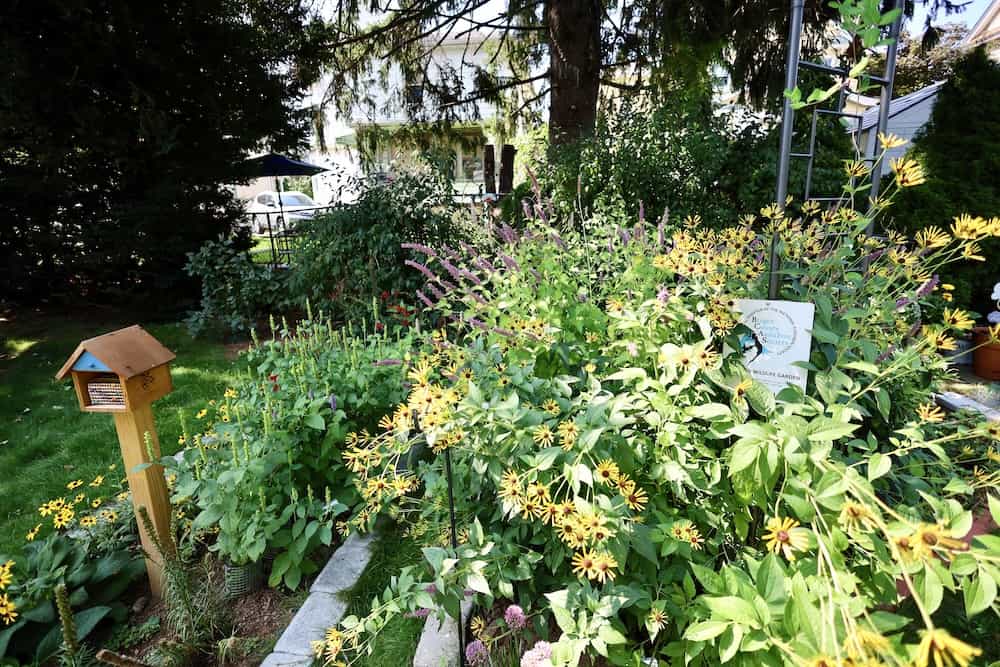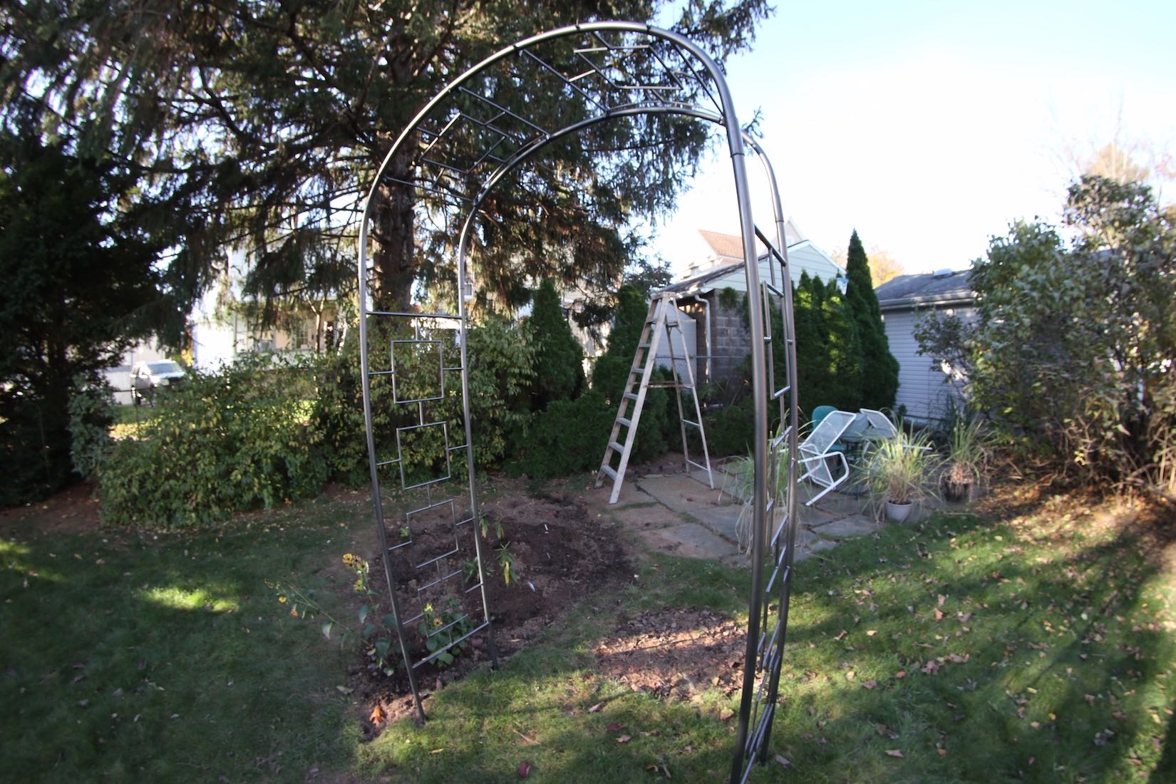 To begin the garden an arbor was placed leading to a patio that was made previously using repurposed slate stones from a walkway. Then the right side of the garden area was created and some plants were added by moving existing ones from the front area of the house. Mountain mint and Henry Eiler's rudbeckia were moved and some asters were added.