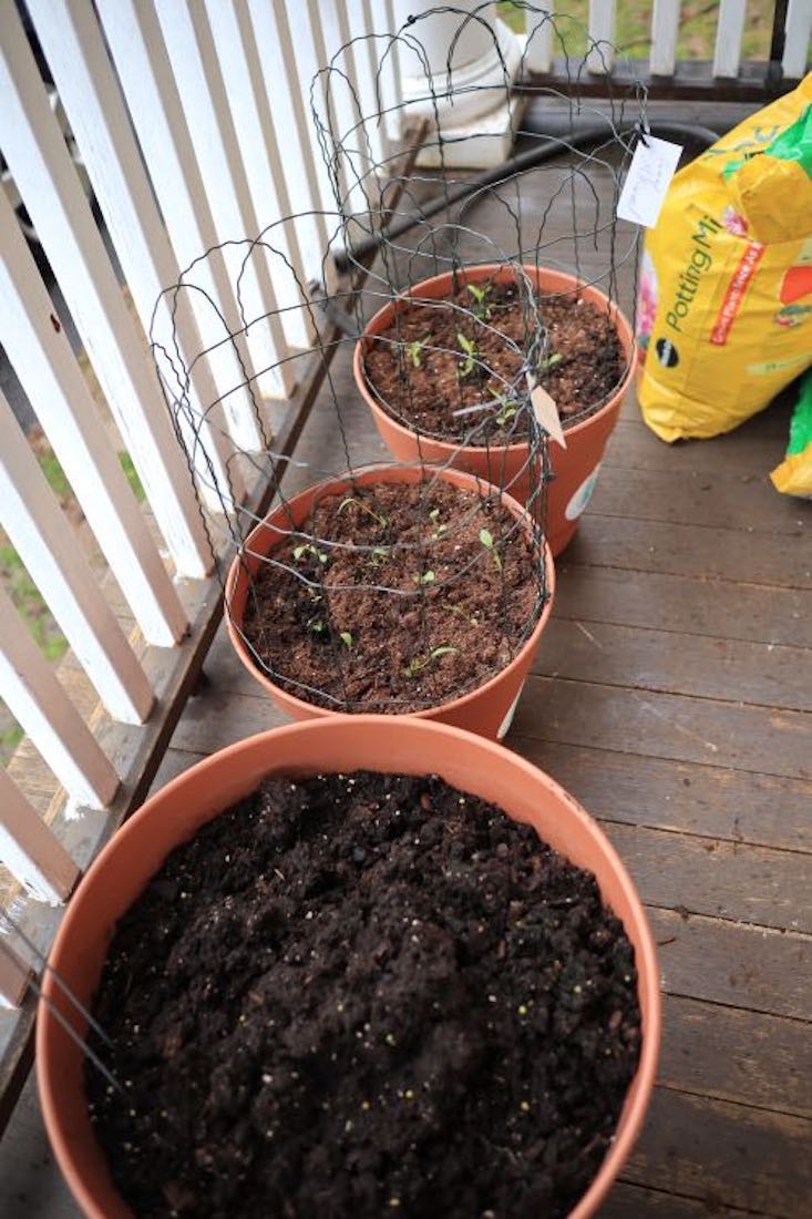 The completed hothouse with the plants, waiting to be transplanted to the garden.