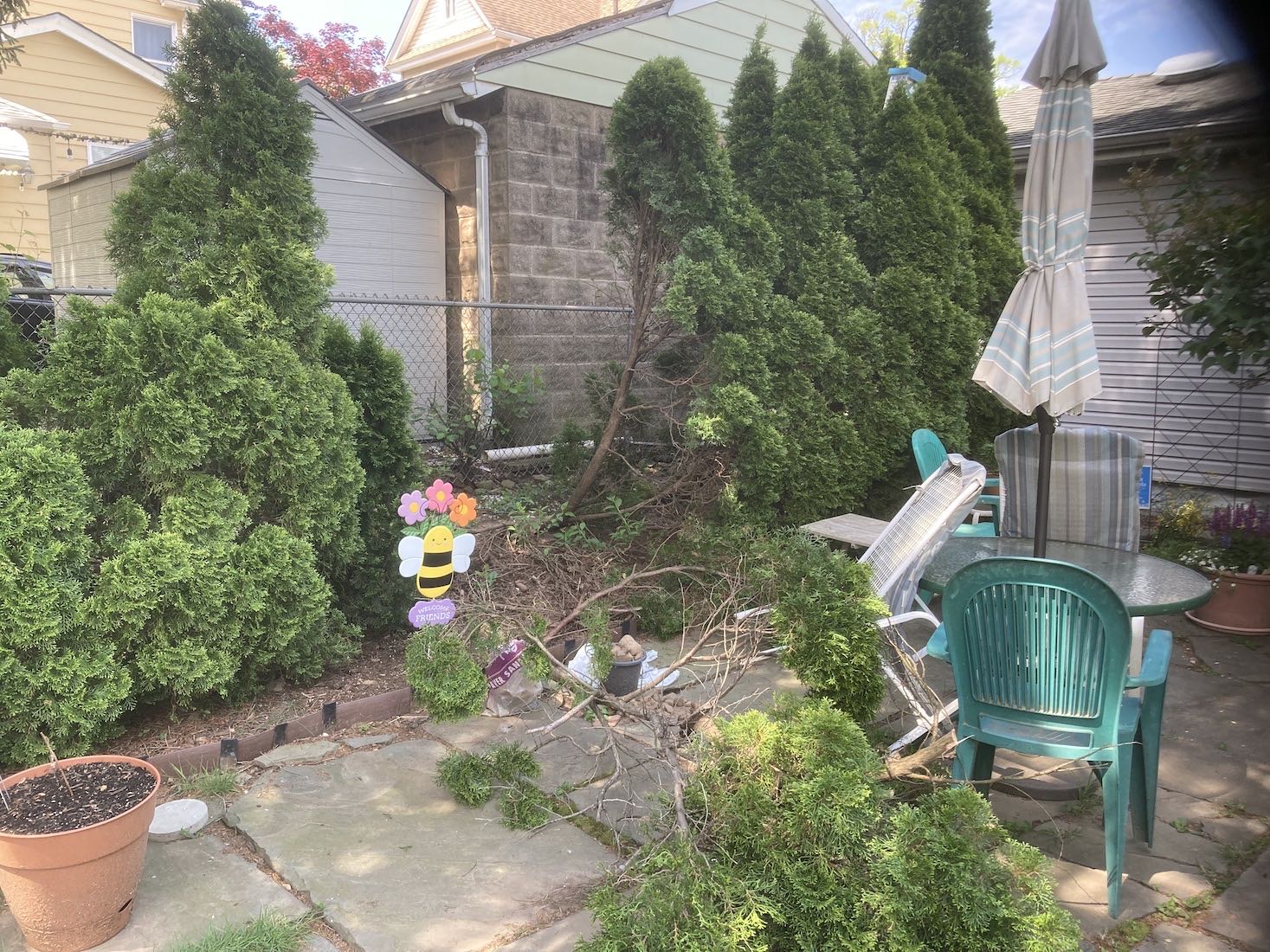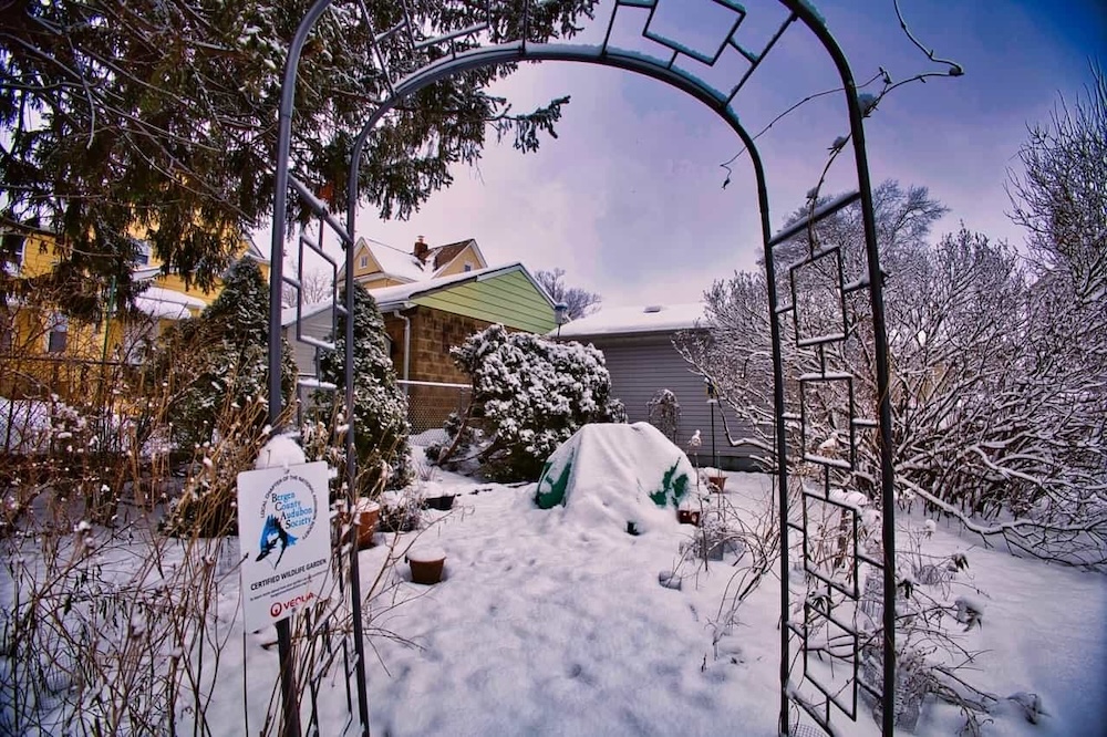 A view of the garden with some plants being added from the hothouse. Also the removal of one damaged bush which was replaced with a Viburnum nudum (possumshaw) obtained from the NJ Botanical Gardens plant sale.