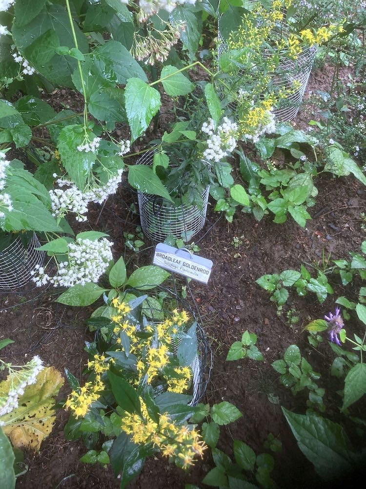 End of September photos showing the still flowering Broadleaf Goldenrod, various Asters, along with the Tall Meadow Rue and White Snakeroot being popular with the pollinators.