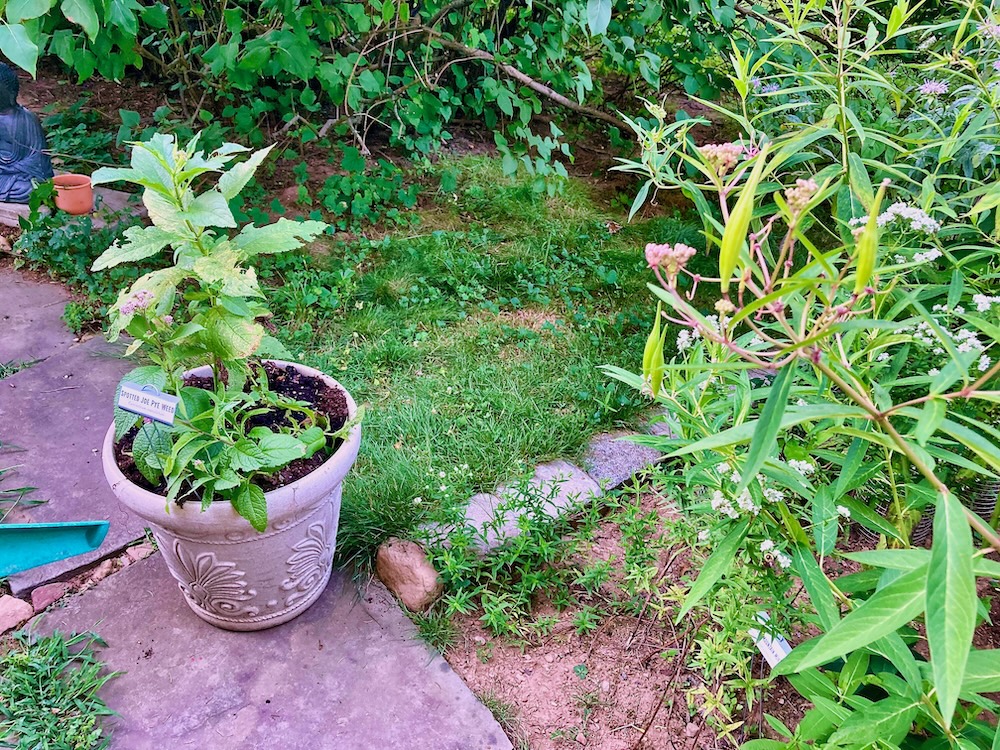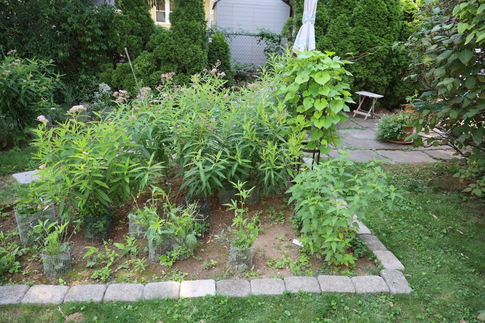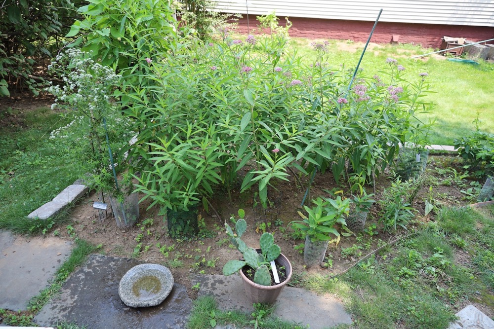 First Monarch visit on the Swamp Milkweed! And the garden is looking great.