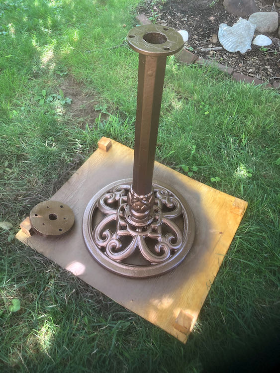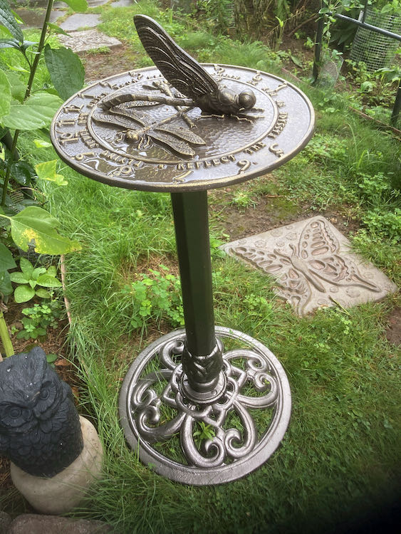 Found a reasonable sundial for the garden and repurposed a bird bath base to support it after making a mounting adapter with the correct spacing. I would prefer a more fixed, brick or concrete base rather than this style base but this is the best solution while still contemplating a final permanent position for the sundial. In fact, it looks good to me but just needs a flat level platform when placed in or near the garden.