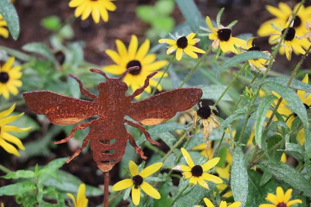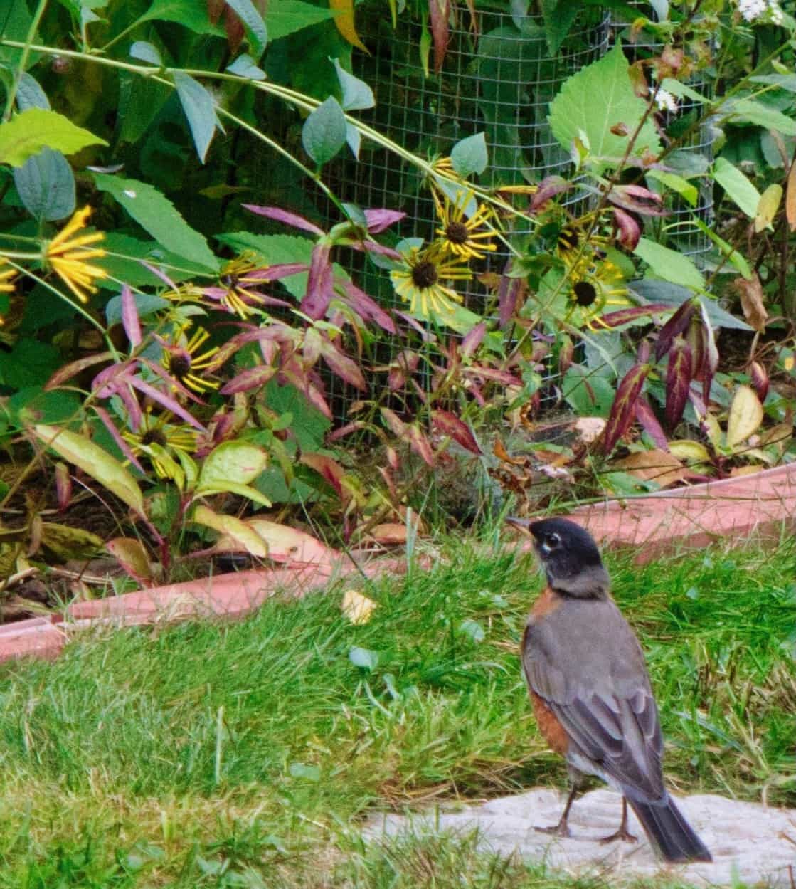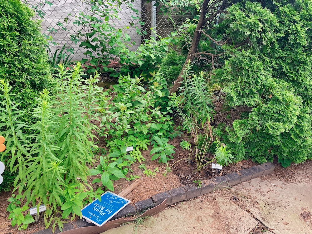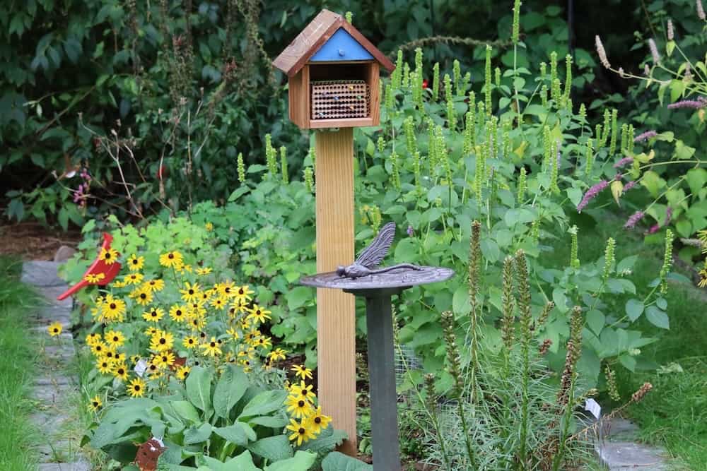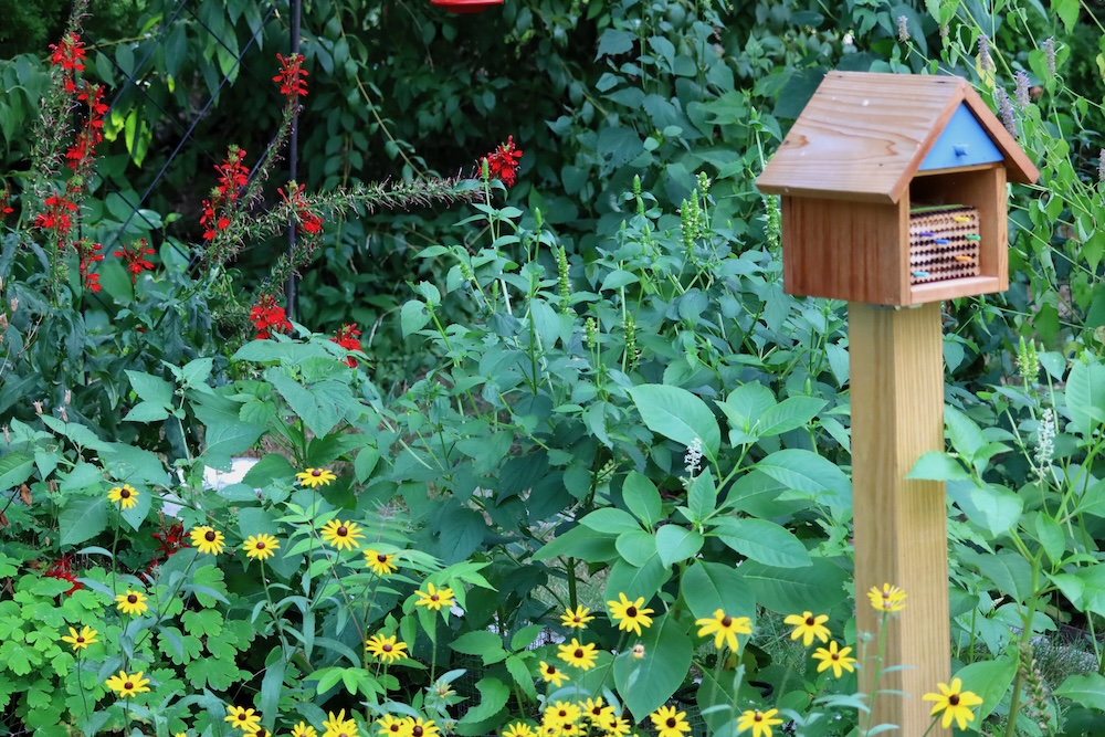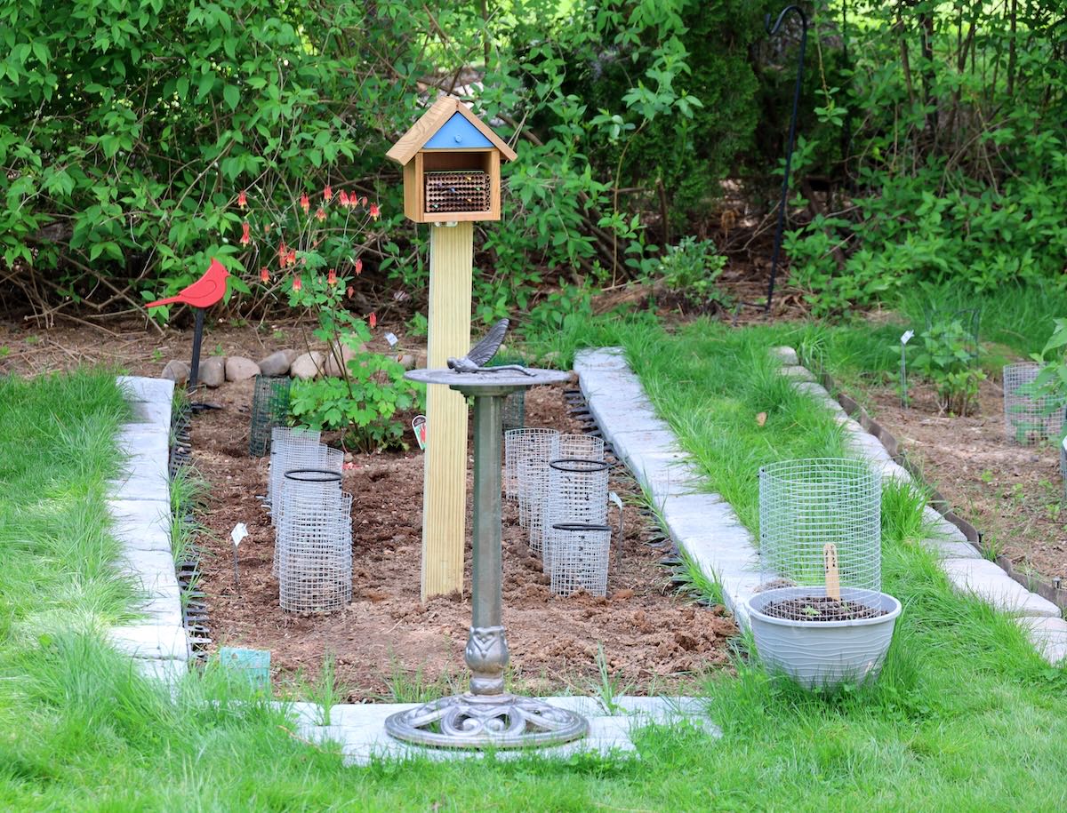 Bee Hotel added to the new area. From Crown Bees, purchased over the Winter months. Also seen is the new location for the Sun Dial and an Eastern Columbine from Rohsler’s Nursery and a rows started of Black-eyed Susans and Giant Yellow Hyssops.