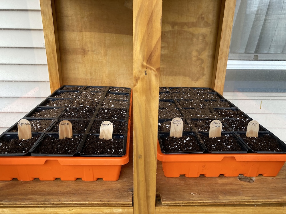 Starting the new year by starting plantings in the porch hothouse. Mostly trying some new to the garden plants including;