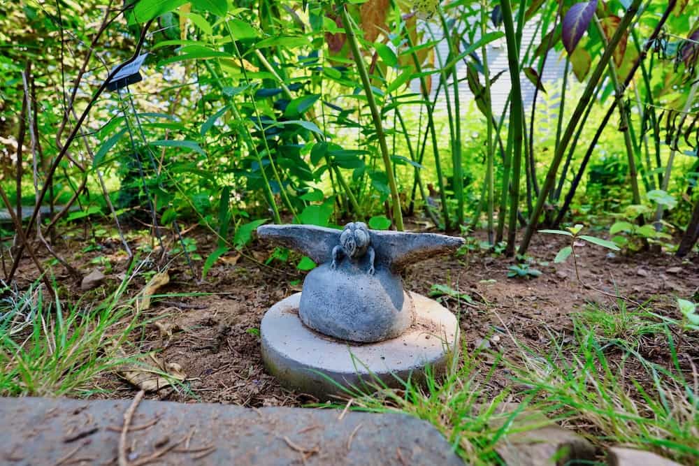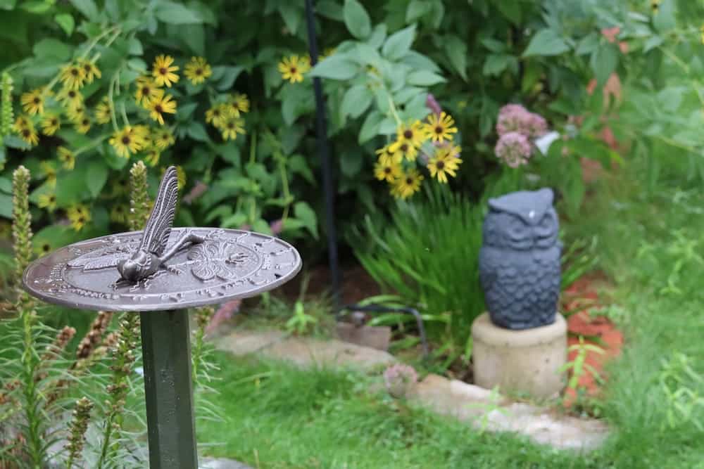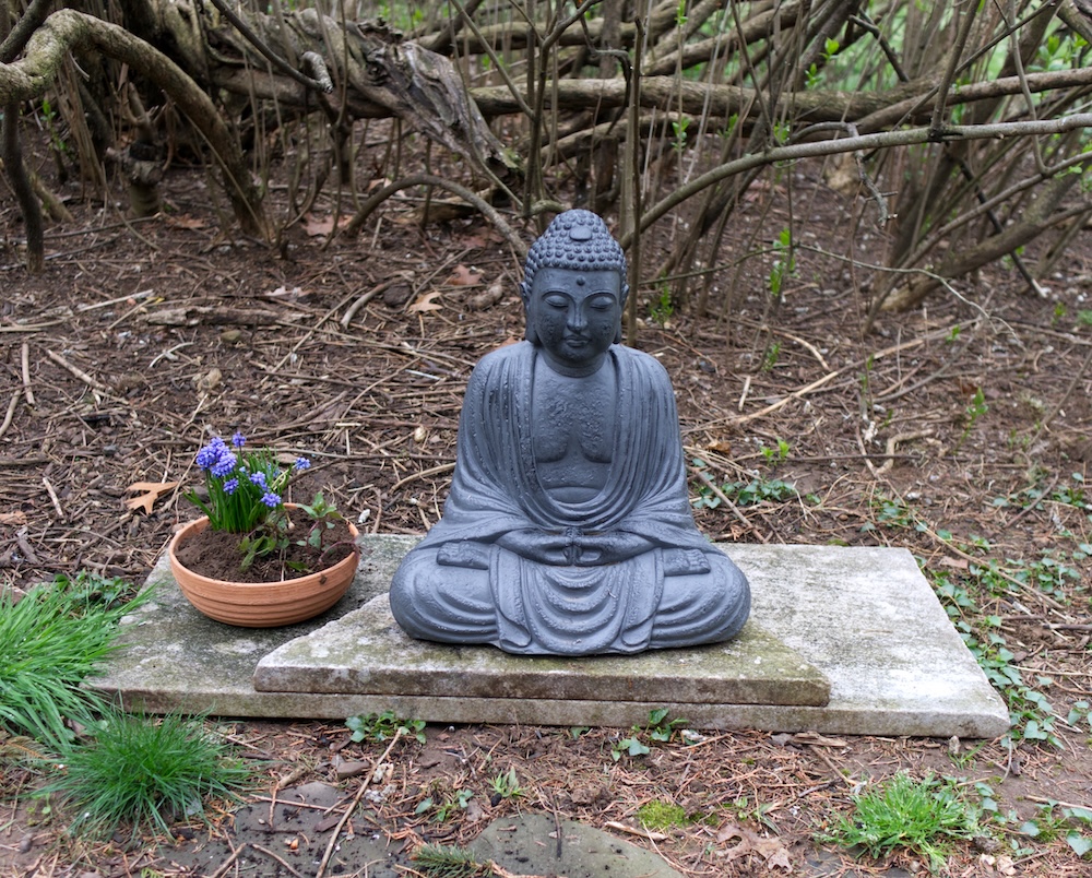 Just placing the sun dial and Buddha in the garden.