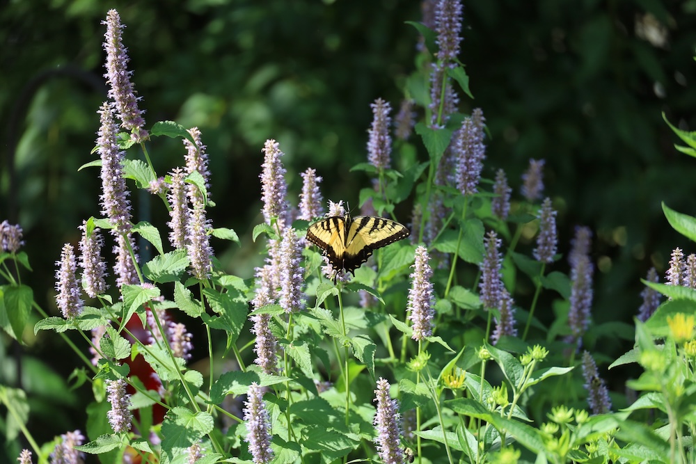 Various garden photos but mostly when an Easter Tiger Swallowtail was spotted around the Giant Purple Hyssops!