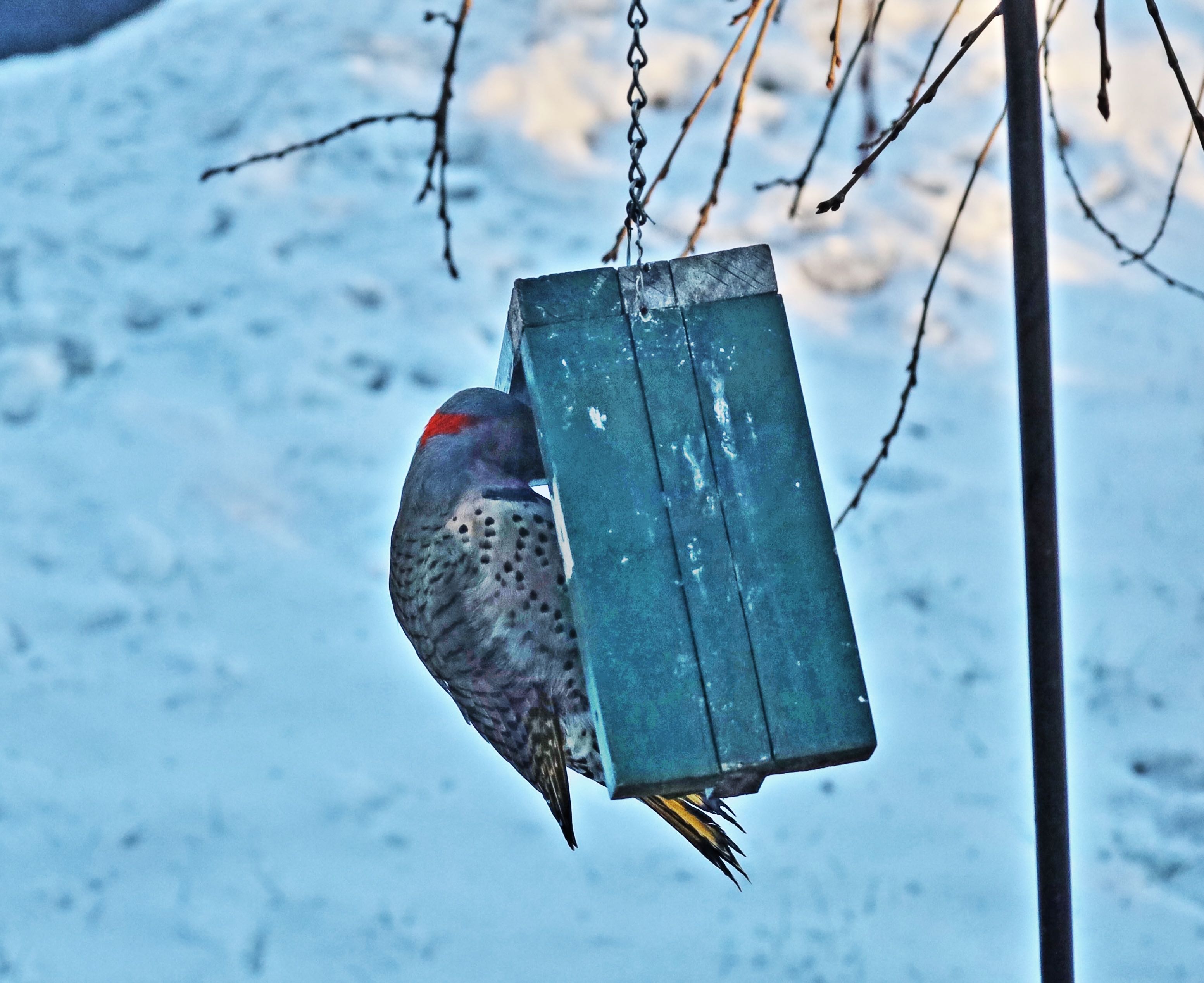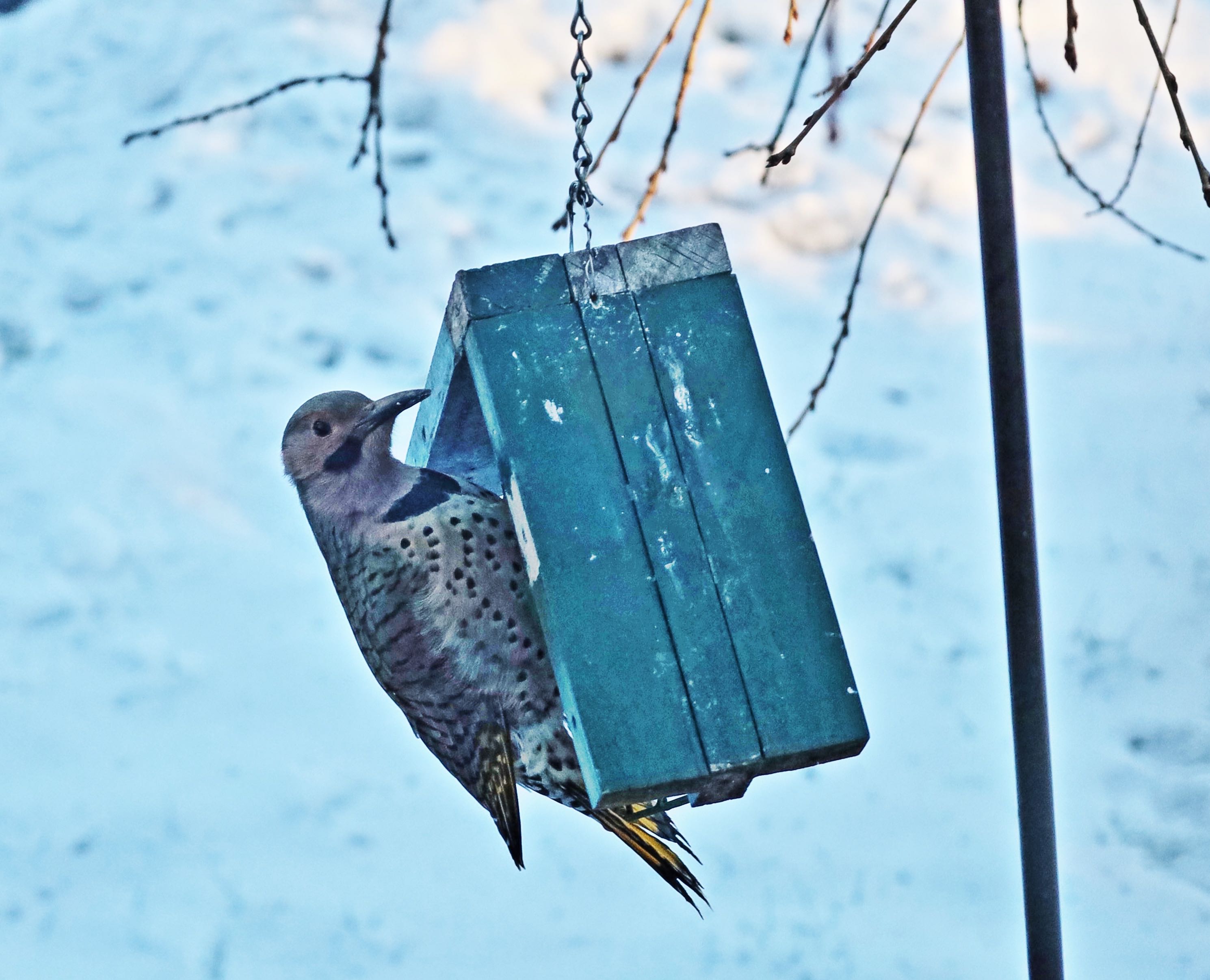Discovered a Northern Flicker at the suet by the porch. Photographed through the window. Photo edited in Canon Digital Photo Professional 4.